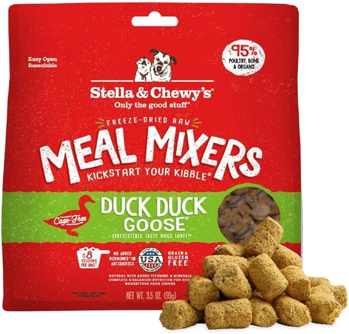Stella & Chewy’s Freeze-Dried Raw Duck Duck Goose Meal Mixers – Dog Food Topper and Mixer – Made with 95% Cage-Free Poultry, Organs & Bone – Perfect for Picky Eaters – Grain-Free – 3.5 oz